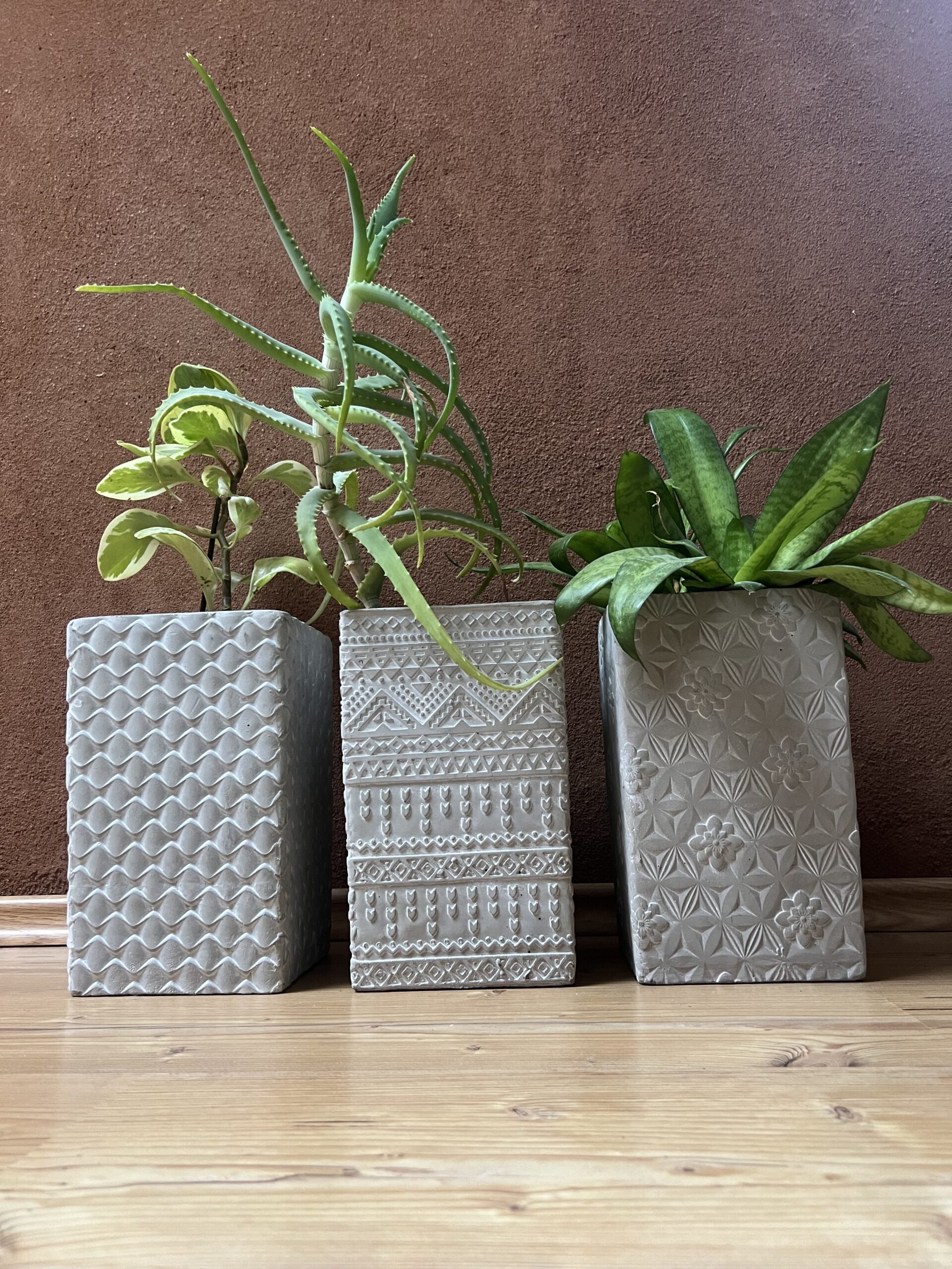 Hall tsementmaterjal koos peene mustriga loob ajatu ja modernse ilme, mis kaunistab igat ruumi või aeda.