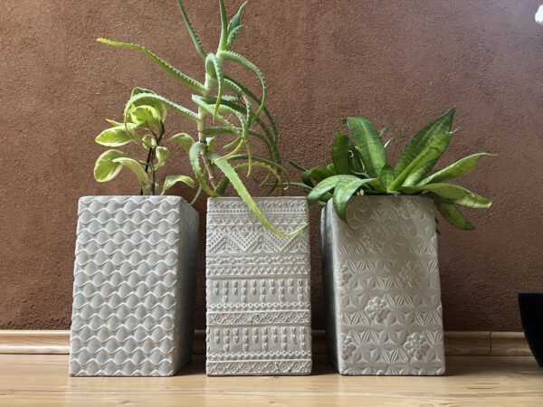 Hall tsementmaterjal koos peene mustriga loob ajatu ja modernse ilme, mis kaunistab igat ruumi või aeda.